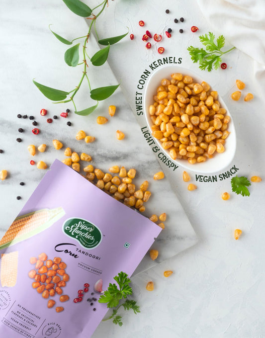 Super Munchies Tandoori Corn Snack – Vegan, Gluten-Free, Low Fat, Zero MSG