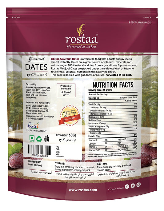 Rostaa Medjool Jumbo Dates – 680g | Gluten-Free, Non-GMO, Vegan