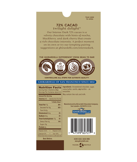 Ghirardelli Intense Dark 72% Cacao Twilight Delight Chocolate – 100g Imported
